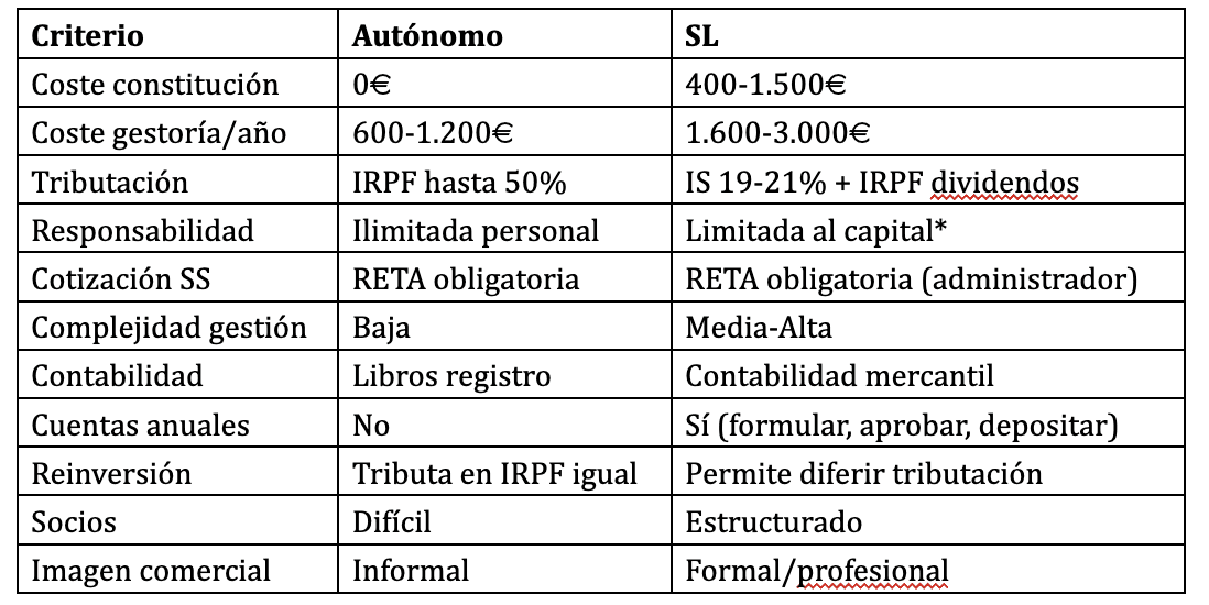 Autónomo vs Sociedad Limitada