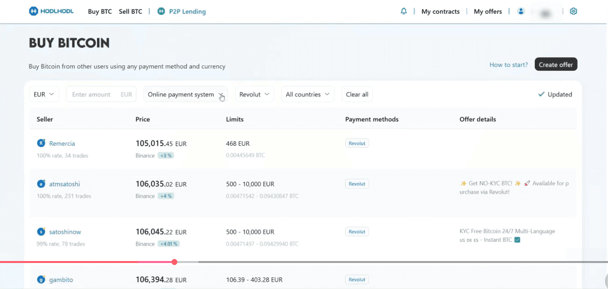 En lugar de crear tu propia oferta, puedes buscar las ofertas ya creadas por usuarios que venden bitcoin: