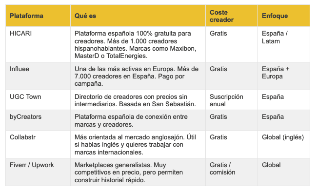 Las agencias trabajan como intermediarias entre marcas y creadores. Registrarte como creador en ellas puede generar trabajo constante sin prospección activa, aunque los márgenes que te quedan son menores que en contacto directo.