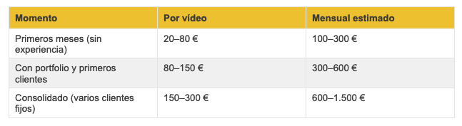 Las cifras varían bastante según la plataforma usada, el tipo de cliente y la experiencia del creador. Estos son rangos orientativos para España en 2025-2026: